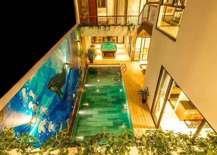 Stranden ligger ungefär 5 minuters promenad bort och Hoi An ligger ungefär 10 minuter med bil från boendet. Villan med 5 sovrum och 5 badrum ligger i den antika delen av Hoi An och inom 10 minuters bilresa från Chùa Cầu-bron.
